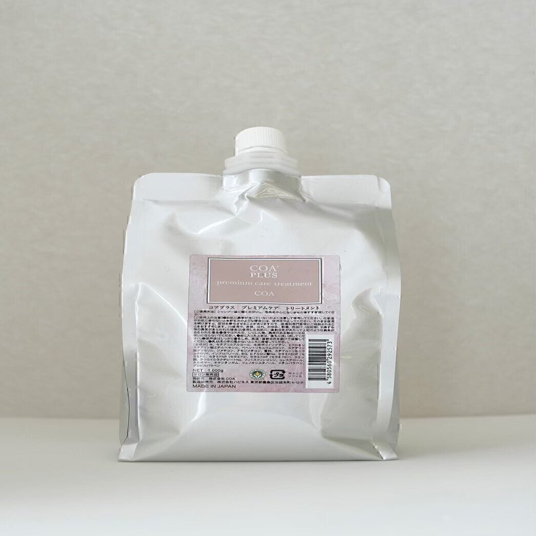 コアプラス(COA PLUS)プレミアムケアトリートメントは、髪の内側まで潤いを届け、指通りの良いなめらかな髪に導くトリートメントです。ヒアルロン酸とセラミドをバランスよく配合し、乾燥やダメージでパサつきがちな髪をしっとりと整えます。